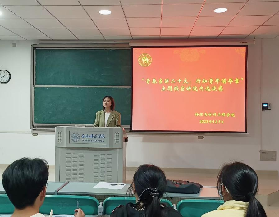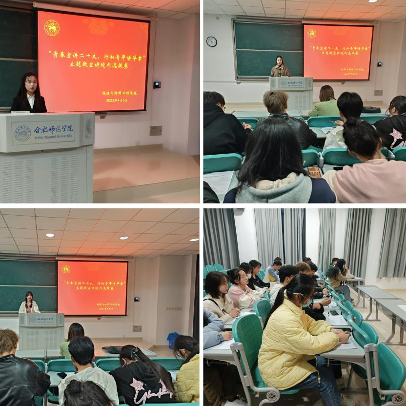 本网讯 为深入学习宣传贯彻党的二十大精神,进一步凝聚青年力量,4月5日晚,永利yl23411集团在滨湖校区博学楼A205举办以“青春宣讲党的二十大,行知青年谱华章”为主题的微宣讲院内选拔赛。参赛选手为2022级各班思政委员,辅导员吴梦云和各班主要班委担任评委。