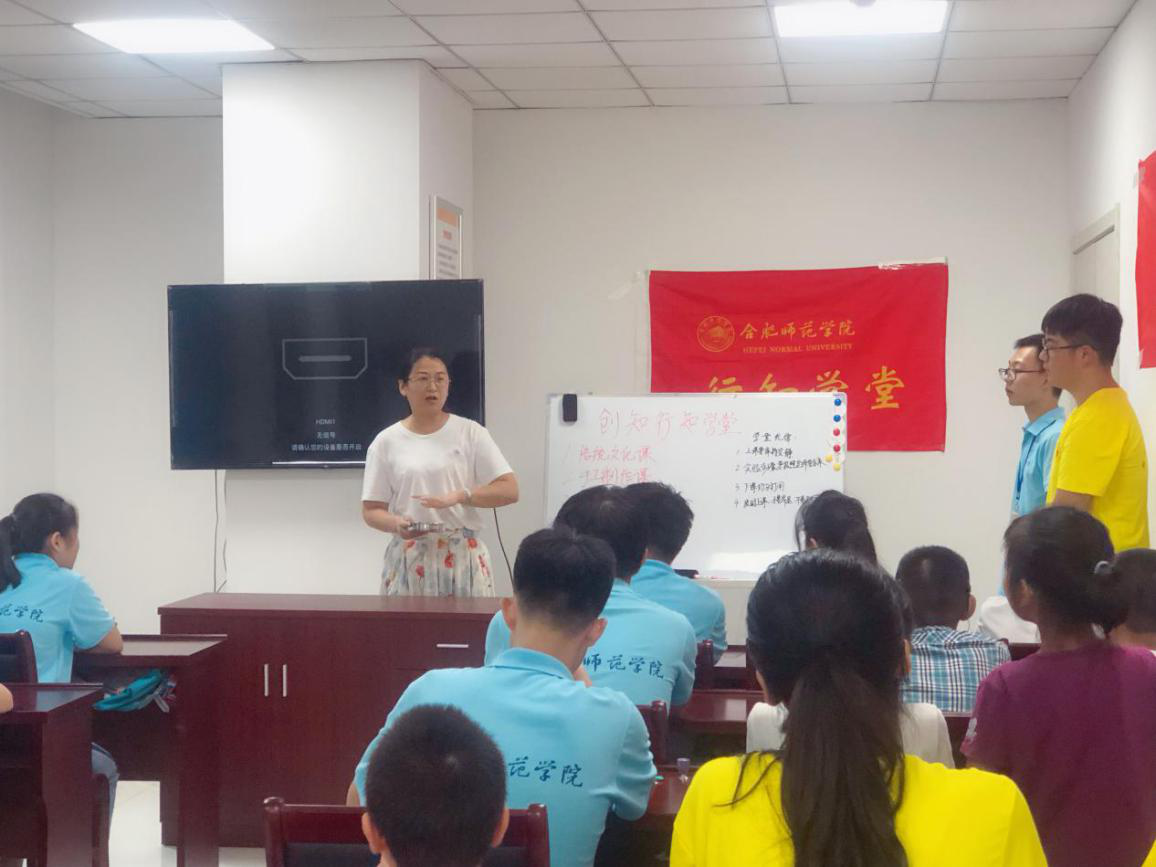 7月22日上午,党委副书记吴昕春冒着酷暑来到合肥市巢桥居委会,看望“创知行知学堂”的小先生和小学员们,并对“小先生”们的教学实践做现场指导。团委副书记刁文彬,永利yl23411集团负责人唐洁、吴震,分团委书记吴梦云陪同看望。