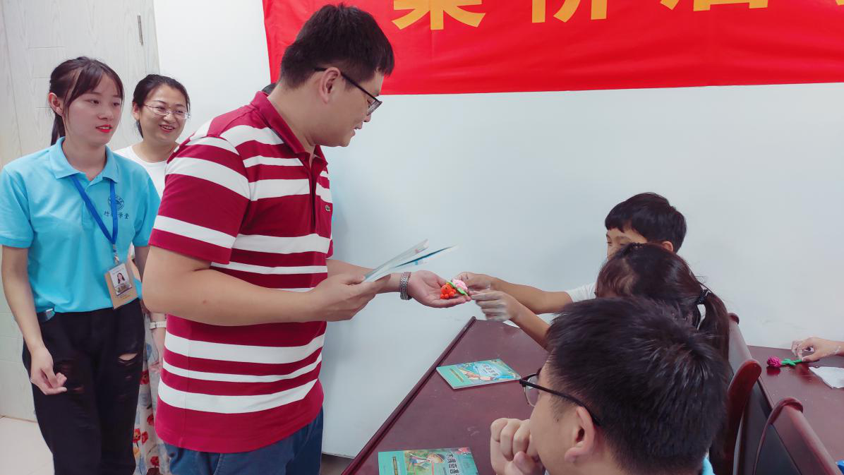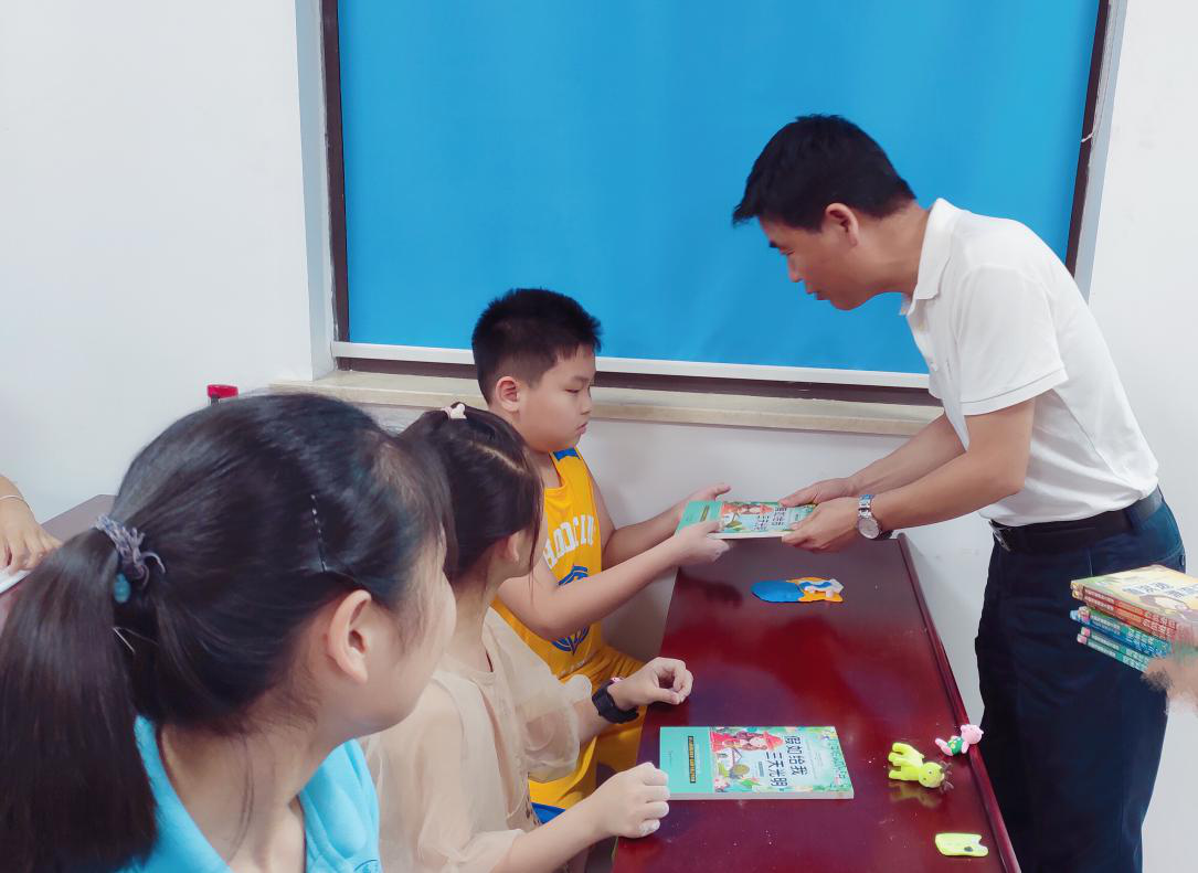 简短的实验课结束后,吴昕春、刁文彬等向小学员们赠送了礼物。吴昕春一边赠送书籍一边同孩子们亲切交谈,询问孩子们的姓名、年级、在“行知学堂”的学习感受等,鼓励孩子们好好学习、不断进步。小学员们满心欢喜地接过礼物,并纷纷自发地把手工课黏土作品回赠给领导和老师,表达他们真挚的谢意。