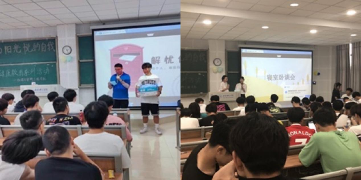 倾诉自我单元分为个体和整体两个层面开展。在个体层面,同学们将内心困惑匿名投入“解忧信箱”,由主持人抽选读出并安排专业老师现场解读答疑;在整体层面,以寝室为单位,组织同学们上台分享寝室生活点滴,交流校园融入、寝室学风文化等热点话题。