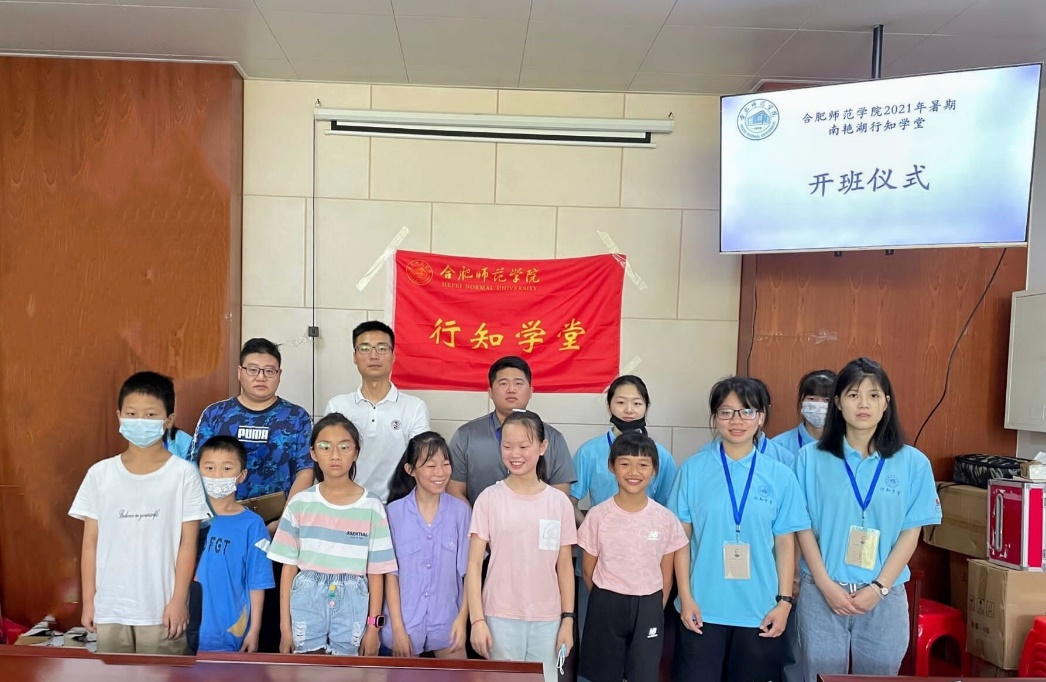 弘扬行知精神,践行行知文化,服务留守儿童,共筑青春梦想。7月9日,永利yl23411集团创办的合肥市蜀山区南艳湖行知学堂顺利开班,海恒社区南艳湖居委会协理员李向阳、指导老师赵厚德、全体“小先生”与小学员们共同参加了开班仪式。