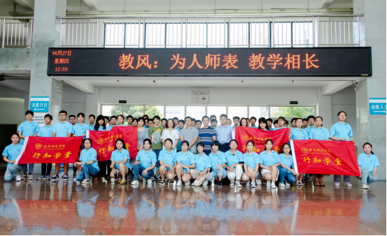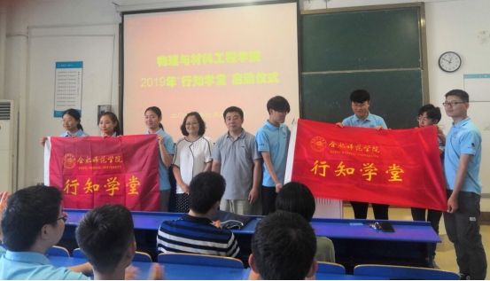 仪式最后,唐洁、吴震为“行知学堂”小先生代表授旗,宣布物材学院2019年“行知学堂”暑期社会实践活动正式启动。