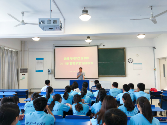 吴梦云简要介绍了今年物材学院暑期“行知学堂”的总体情况。接着,吴震作动员讲话,吴书记给“小先生”提出了三点要求:一是要抓住机遇,增长才干,他勉励同学们充分利用这次暑期社会实践的机会,了解社会、增长见识,将个人成长与社会发展有机结合,在实践过程中受教育,增见识,长才干;二是要不断创新,打造品牌,他要求“小先生”更好地发挥物材学院的专业特色,积极拓展“行知学堂”和社会实践的新领域、新载体;三是安全有序,注重成效,他嘱咐参与“行知学堂”的同学要牢固树立“安全第一,预防为先”的思想,严守规矩,服从安排,强化安全措施,确保活动安全有序,积极把我院大学生求真务实、健康文明、奋发进取的精神面貌展现给社会,努力做出令自己满意,令团队满意,令学院满意的丰硕成果。
