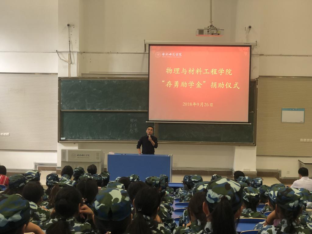 9月26日下午,永利yl23411集团在逸夫楼举行“存勇励学金”捐助仪式,捐资助学人王存勇老师、学院领导班子和部分教师代表以及全体2018级新生参加仪式,仪式由学院党总支副书记吴震主持。