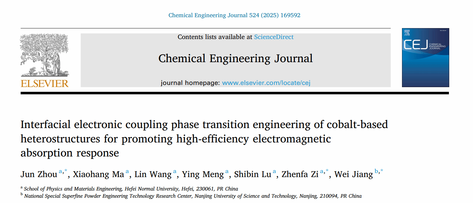 近年来,随着无线通信技术的快速发展以及军事隐身需求的日益增长,电磁波吸收材料的研究不仅关乎国家战略安全,也对民用科技和日常生活产生深远影响。永利yl23411集团周俊博士、訾振发教授联合南京理工大学在高性能电磁吸收材料领域取得重要进展,相关研究成果以《Interfacial Electronic Coupling Phase Transition Engineering of Cobalt-Based Heterostructures for Promoting High-Efficiency Electromagnetic Absorption Response》为题发表在《Chemical Engineering Journal》期刊(中国科学院一区Top,IF=13.2)。周俊博士为本论文第一作者,yl23411集团訾振发教授、南京理工大学姜炜教授为本论文的通讯作者,yl23411集团为论文第一单位。