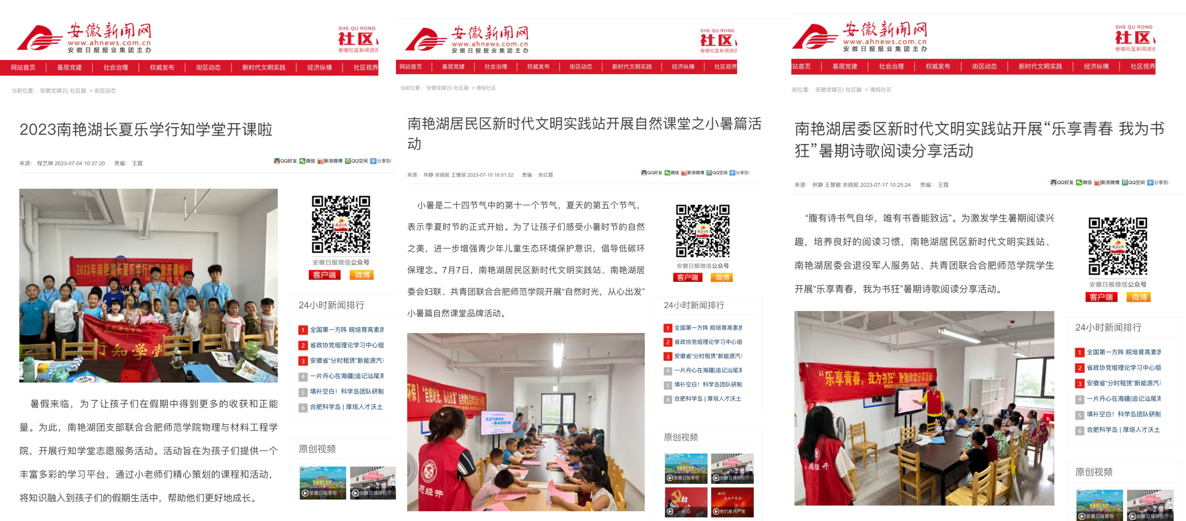 7月4日、10日、17日,《安徽新闻网》对学堂进行多次报道。(永利yl23411集团:吴梦云)