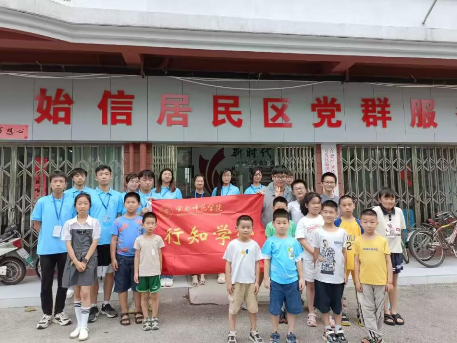 本网讯7月3日,永利yl23411集团始信行知学堂在合肥市经开区临湖社区始信居民区党群服务中心正式开班。临湖社区始信居民区党总支李江云书记、学堂指导老师李妍、13名行知学堂小先生、全体小学员及家长共同参加了开班仪式。