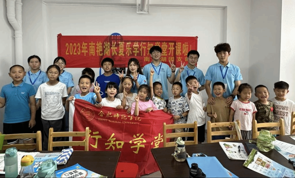 本网讯 服务留守儿童,践行行知精神,共筑青春梦想。7 月 3 日,永利yl23411集团“长夏乐行”行知学堂在海恒社区南艳湖居委会正式开班。南艳湖社区负责人程艺琳、学堂6名行知学堂小先生、全体小学员及家长共同参加了开班仪式。