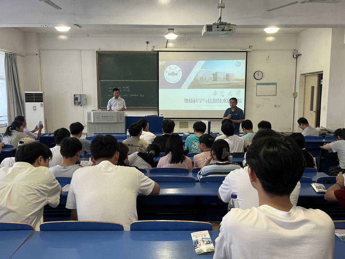 宣讲会上,来自安徽大学物质科学与信息技术研究院陈学刚教授、龙明生教授和物理与光电工程学院副院长吕亮教授分别将各自学院的建设历史、师资力量、教学设备、基金资助情况、各个研究组和研究生招考情况进行了详细介绍。宣讲现场,老师就同学们提出的问题进行了答疑解惑并对考研院校专业的选择,复习重难点等进行了指导。