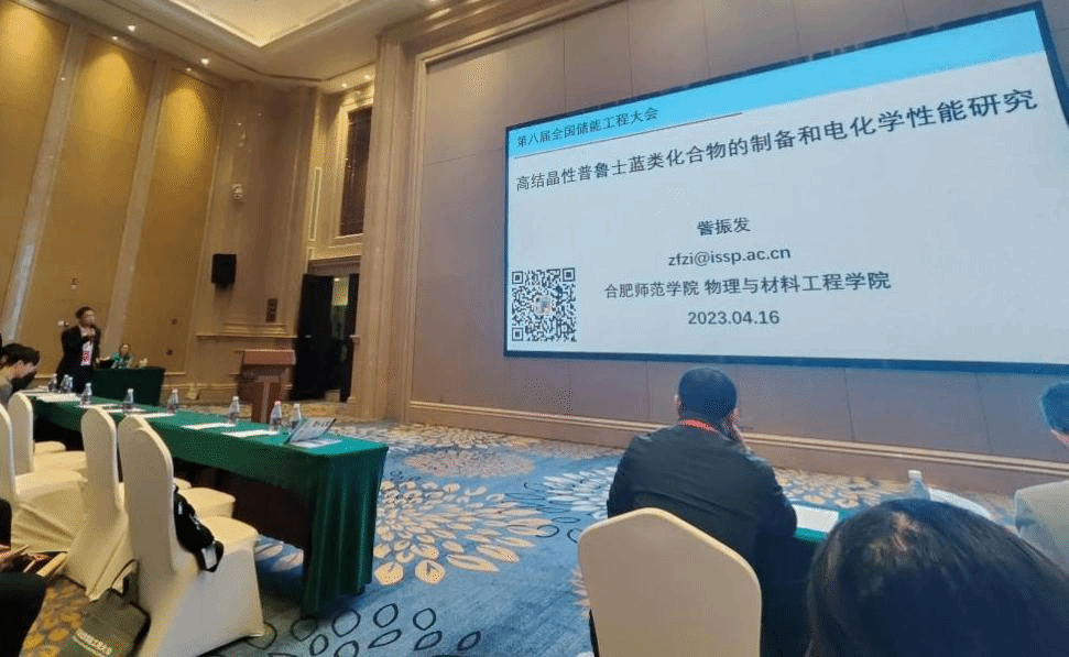 大会以“高效转换-绿色储能-循环发展”为主题,来自全国高校和产业的900余名专家学者在大会上介绍了先进储能材料、储能器件、储能系统集成应用等方面的最新研究成果。訾振发教授作为分会主席主持了第一分论坛“锂/钠/钾/镁/锌离子电池、液流电池及其应用”的学术报告,会上訾振发教授、马小航教授分别做了《高结晶性普鲁士蓝类化合物的制备和电化学性能研究》和《新型钠离子电池隔膜材料的设计与研究》的邀请报告,其他参会人员结合自己的研究方向与国内同行进行了广泛交流和探讨。