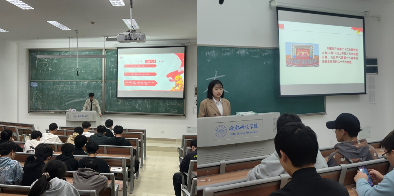 主题班会上,辅导员向同学们讲解了党的二十大的重要意义。党的二十大是在全党全国各族人民迈上全面建设社会主义现代化国家新征程、向第二个百年奋斗目标进军的关键时刻召开的十分重要的大会,凝心聚力,催人奋进。从1921年党的一大到党的二十大,中国人民和中华民族在党的领导下实现站起来、富起来再到强起来的伟大复兴,一路披荆斩棘,勇毅前行,创造辉煌。自中国特色社会主义步入新时代以来,十年的伟大变革在党史、新中国史、改革开放史、社会主义发展史和中华民族发展史具有里程碑意义。
