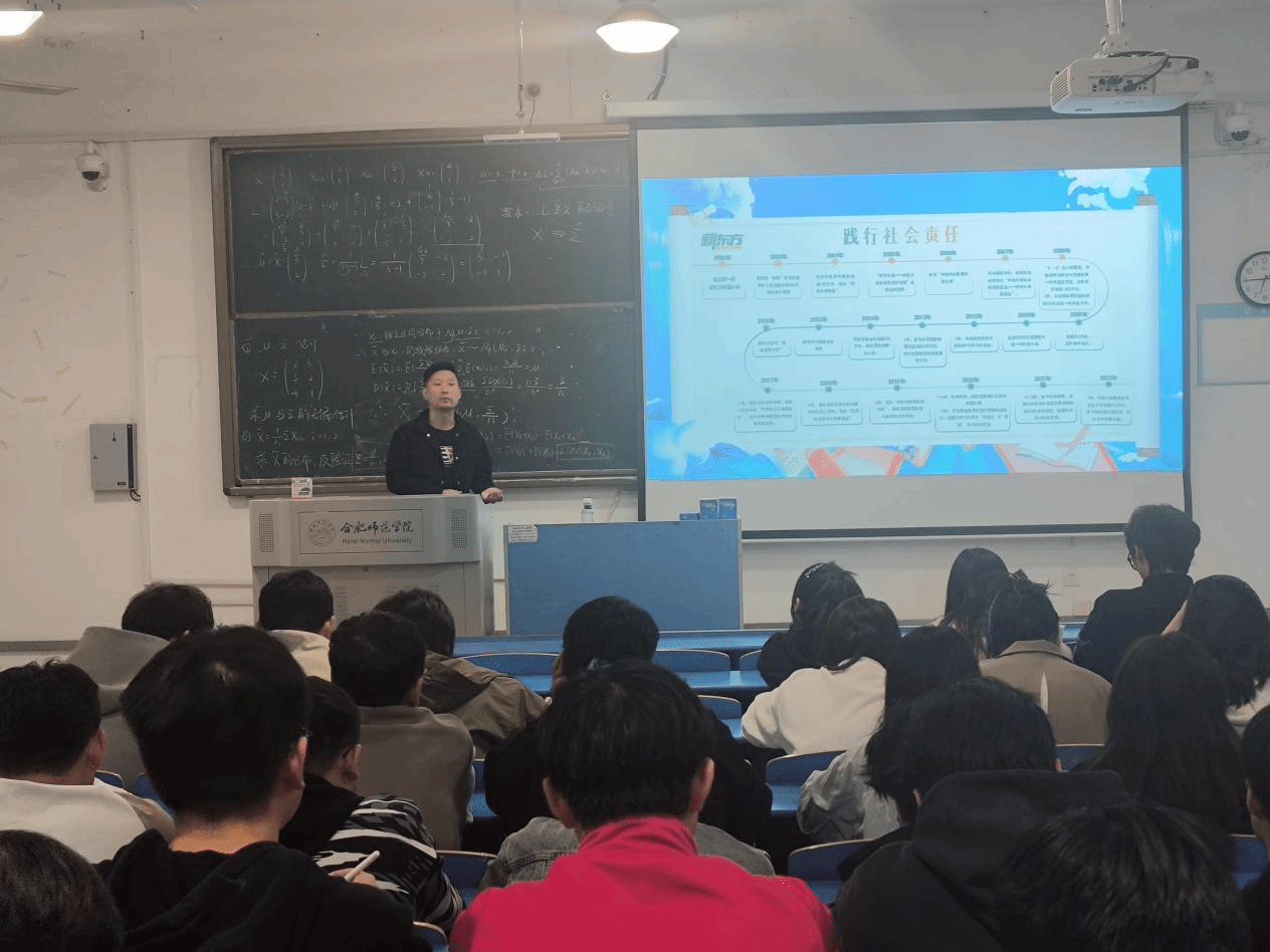 为扎实做好学院就业创业工作,提升育人质量。10月9日晚上,学院邀请新东方教育科技集团来校开展宣讲。2025届全体毕业生和辅导员、班主任参加。