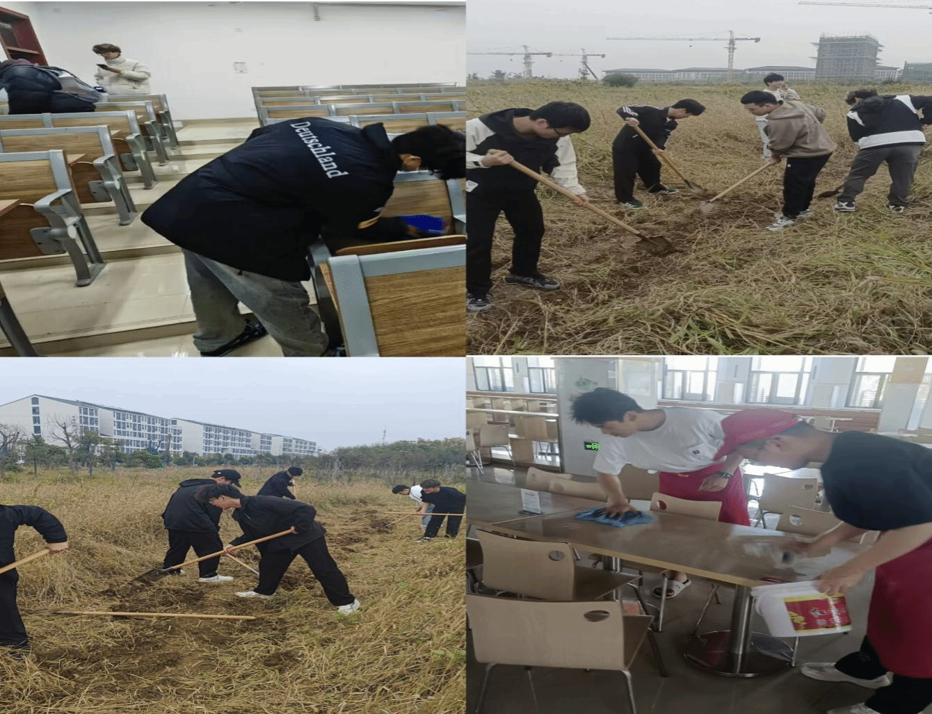 此次劳动教育实践将教室布置、餐厅清洁以及宿舍整理等日常劳动予以规范化、系统化。学院各班级制定教室、实验室及宿舍的值日计划,按周和日开展清洁工作,以确保教室、工作室与宿舍的整洁、有序。通过定期的环境安全检查,促使学生于日常生活中维持优质的学习、生活空间。在劳动实践周期间,学院还集中开展基地种植劳动、食堂清理、垃圾清理等校园劳动。