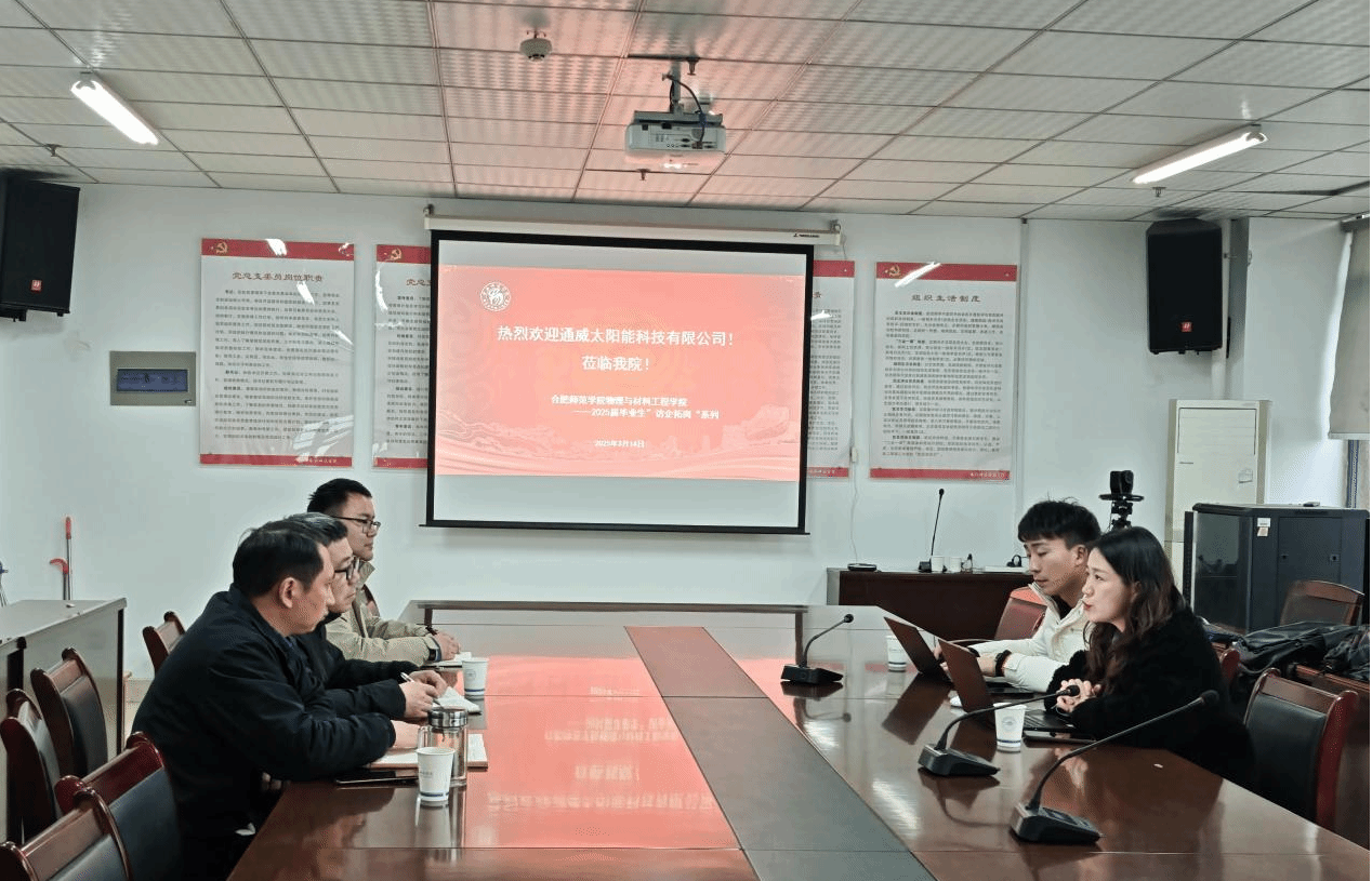通威太阳能人力资源部经理张娜娜、校招主管李存东对学院的欢迎表示感谢。双方围绕产业学院学生实习实践、应届生校招、技术研发和成果转化等校企合作工作进行深入研讨,达成初步共识。