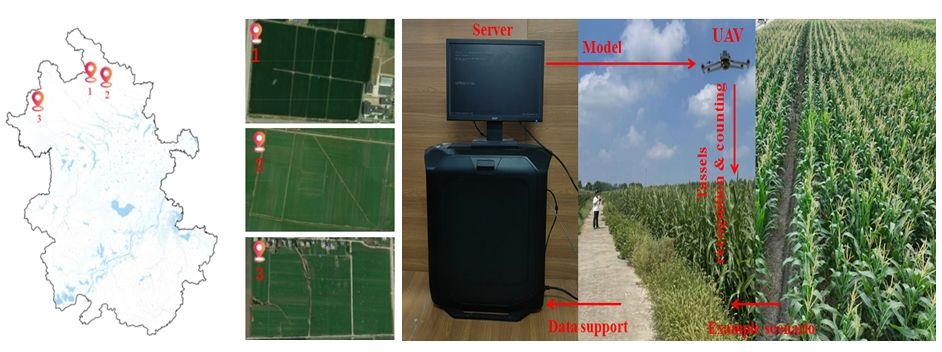 近日,永利yl23411集团光电感知团队在智慧农业知名期刊《Smart Agriculture Technology》(中国科学院二区,IF=5.7)发表题为“Detecting Tassels in UAV imagery with Tassel-YOLOv12n Model: A Case Study of Maize Varieties in the Huaibei Plain, China”的研究成果。该项工作中,研究团队依托濉溪县、太和县和埇桥区的长期定位试验田开展无人机遥感监测,收集了2024年淮北平原玉米抽雄期和散粉吐丝期的海量可见光影像。学生团队标注了近十万棵玉米雄蕊,构建了高质量数据集Maize_hfnu。通过研发的Tassel-YOLOv12n算法实现了大田复杂环境下玉米雄蕊的精准识别和计数。本技术将用于无人机扰动干预授粉的时机选择和路径规划,成果将为淮北平原砂姜黑土区粮食单产提升提供技术支持。
