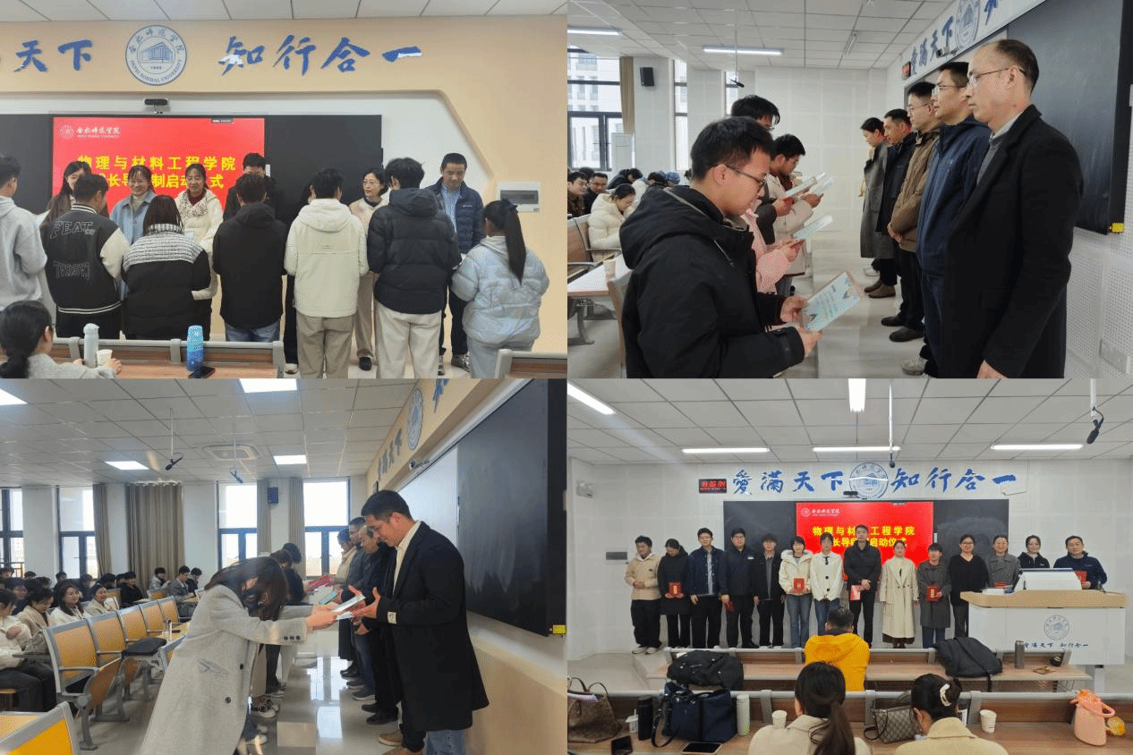 物理学系主任沈永才、光电信息科学与工程系副主任傅强、新能源材料与器件系主任马小航、材料科学与工程系主任王琳分别宣读各专业导师名单及对应指导学生名单。随后各专业老师分组上台,接受学生代表诵读拜师词、呈送拜师帖、行拜师礼。