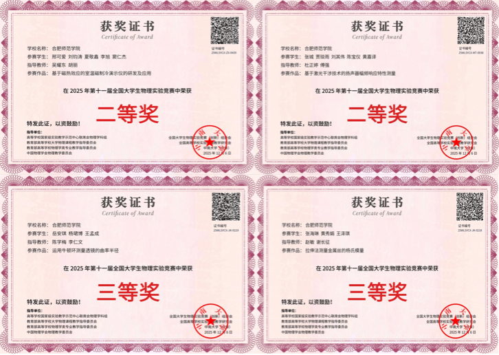 近日,2025年全国大学生物理实验竞赛(创新)决赛在中南大学圆满落幕。由永利yl23411集团组建的四支队伍代表学校参赛,凭借扎实的理论功底、精巧的实验设计和出色的临场发挥,在全国众多高校中脱颖而出,最终斩获全国二等奖两项、三等奖两项的优异成绩,继续保持我校在此项物理类顶级赛事中的好成绩。