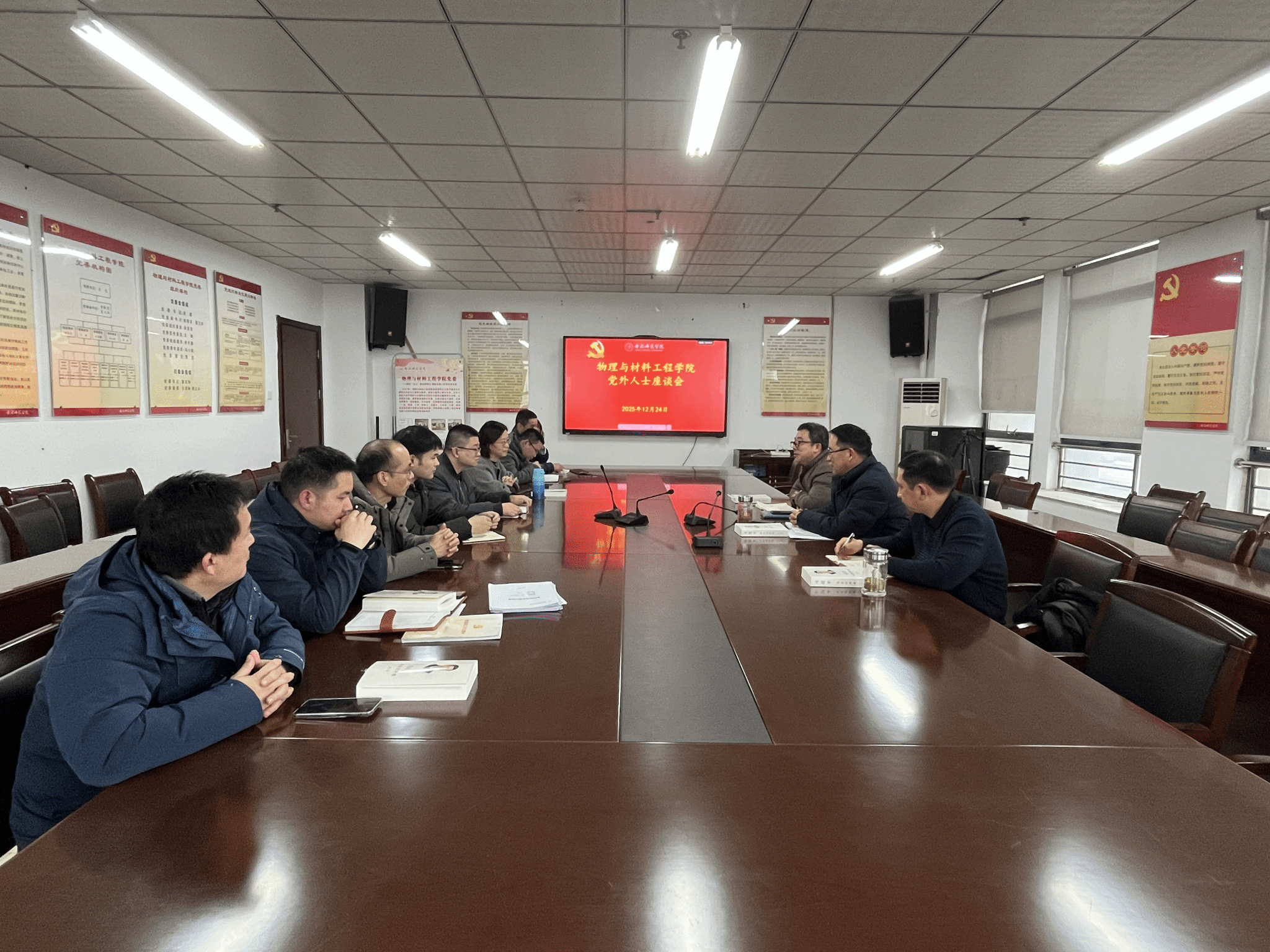 为进一步加强统一战线工作,广泛听取党外人士对学院事业发展的意见建议,凝聚共识、汇聚力量,共同推进学院各项事业高质量发展,2025年12月24日下午,永利yl23411集团在行知楼1202会议室召开党外人士座谈会。学院各民主党派成员、群众等党外人士应邀参加座谈。会议由学院党委书记吴震主持。