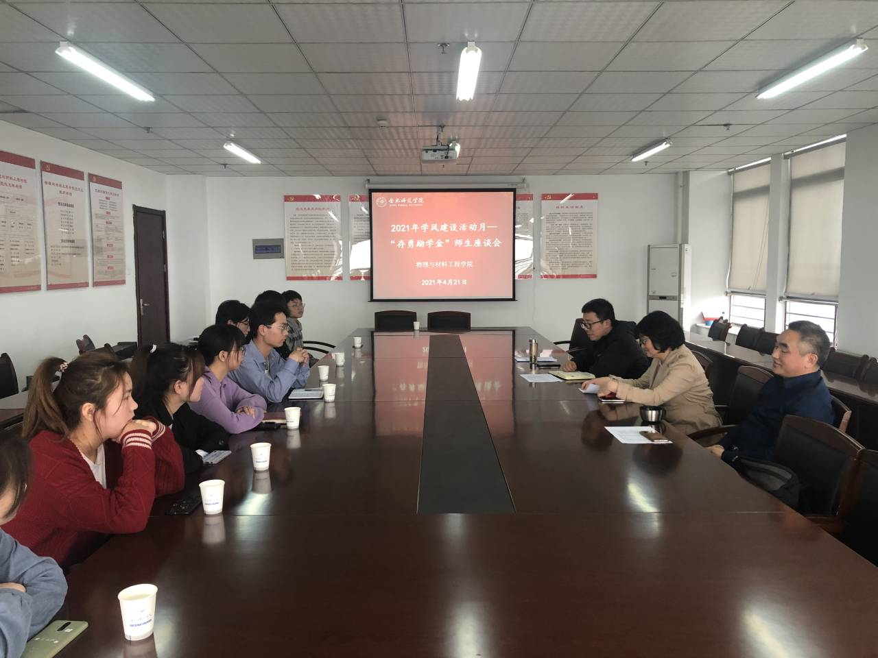 4月21日,永利yl23411集团在行知楼1202会议室召开“存勇励学金”获奖同学师生座谈会,学院党总支书记唐洁、王存勇老师和2020-2021学年获得“存勇励学金”的同学参加座谈。座谈会由党总支副书记吴震主持。