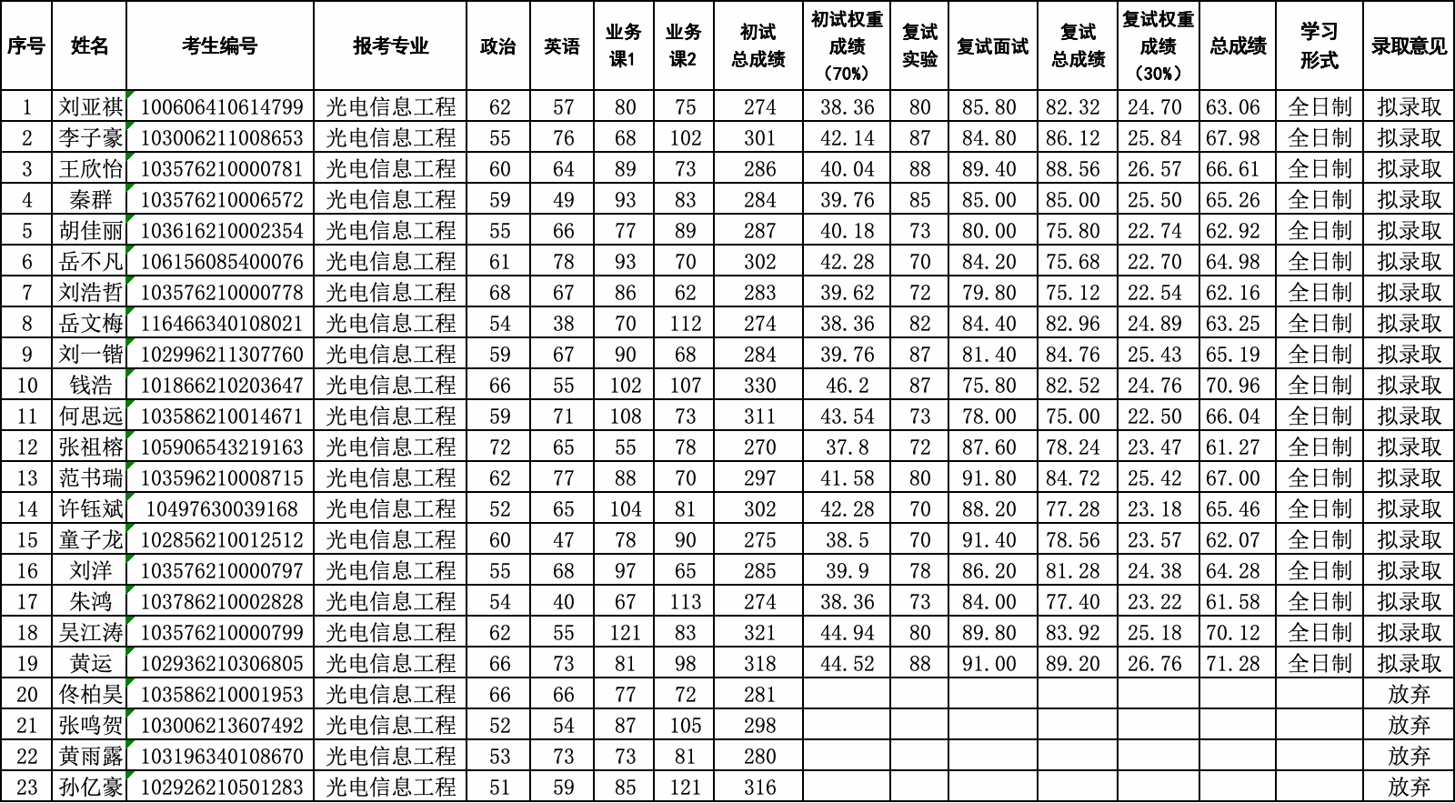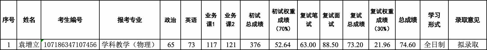 永利yl23411集团2026年硕士研究生招生复试第一轮调剂拟录取结果