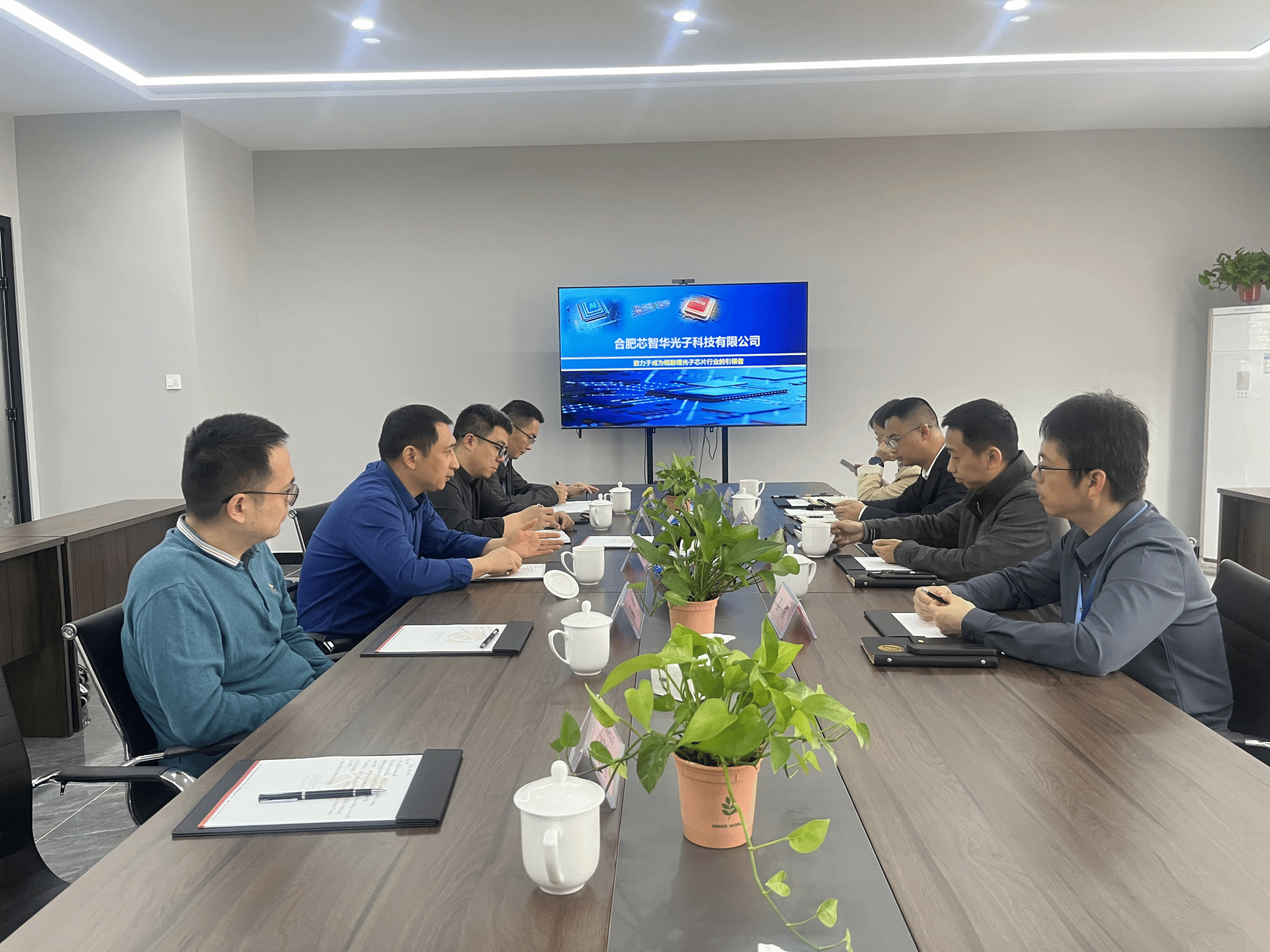余龙宝介绍了物材学院光电、新能源、材料等工科专业学生的人才培养情况,他希望能够通过与合肥芯智等业内高新企业加强合作,反馈教学与人才培养,精准培养符合企业需求的高素质人才,实现企业与高校合作双赢。