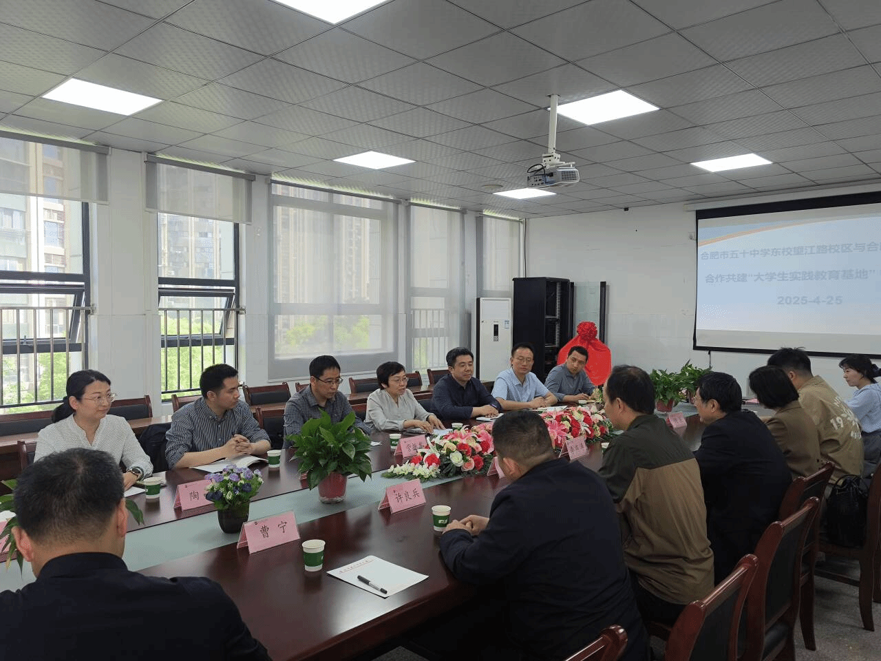 期间,梁立昌代表学院与合肥市第五十中学望江路校区签订了大学生就业实习基地协议,双方为共建基地共同揭牌。